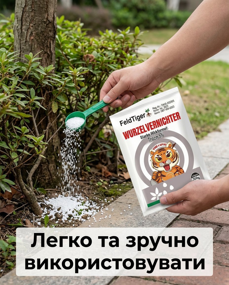 Використання засобу неймовірно просте. Завдяки гранульованій формі та зручній мірній ложці, ви легко нанесете необхідну кількість засобу у проблемні зони. Більше не потрібно викопувати та обрізати корені вручну! Не відкладайте вирішення проблеми на потім – чим раніше ви почнете, тим швидше отримаєте бажаний результат. А якщо не буде ефекту, ми гарантуємо повне повернення коштів!