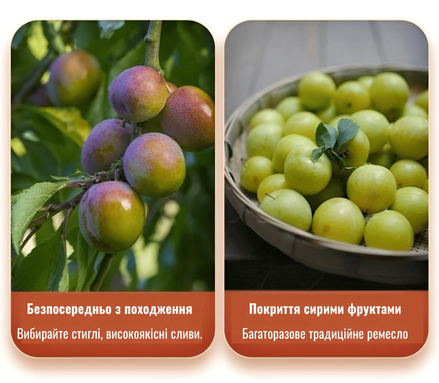 Сливи кілька разів відбирають вручну, завдяки чому м’якоть товста, кісточки невеликі, а смак солодкий і приємний.