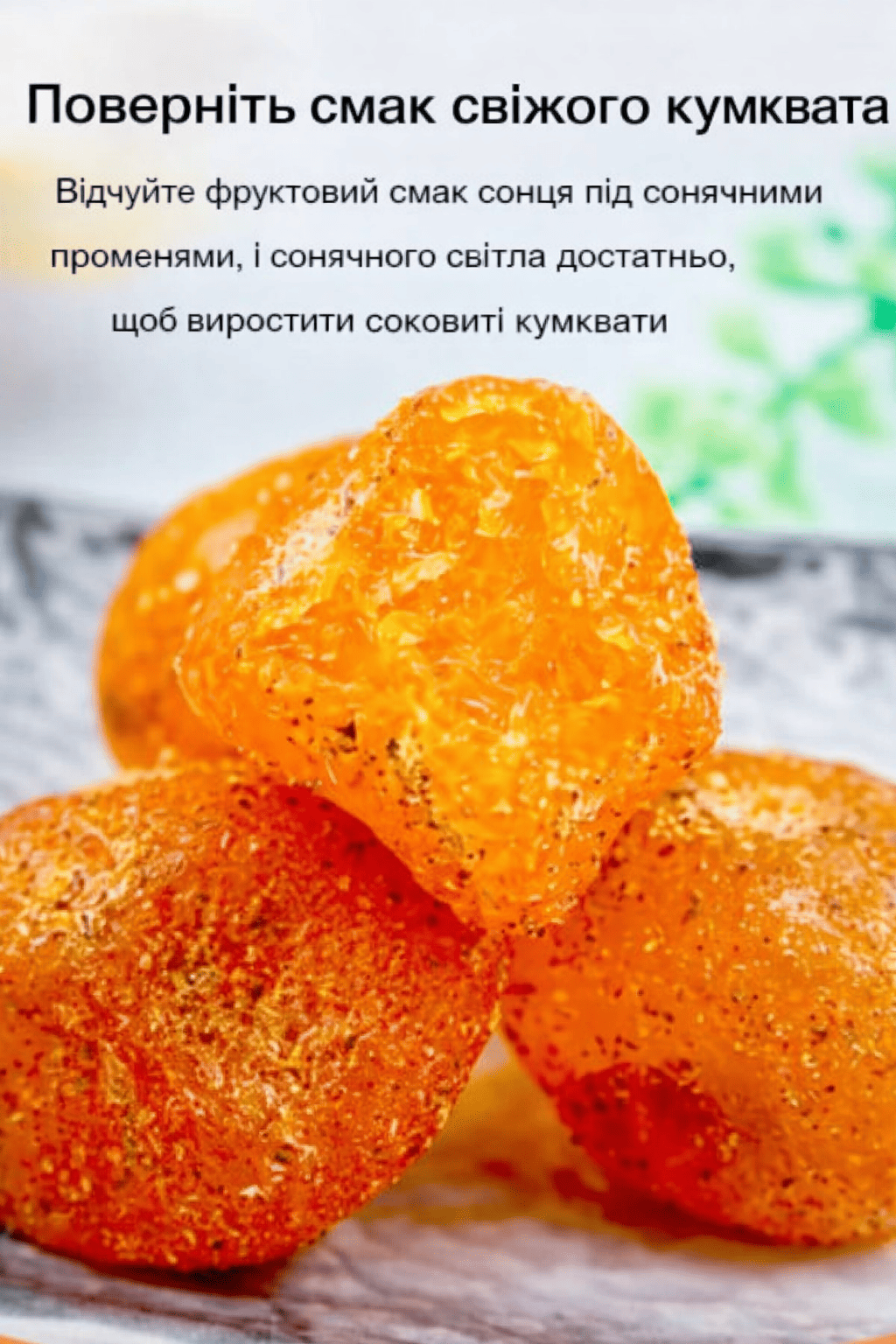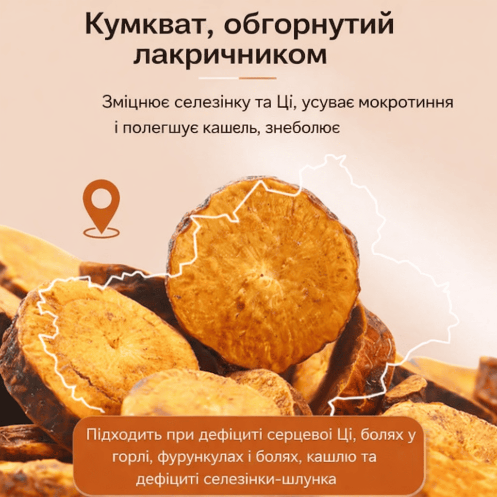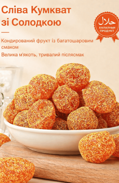 Дуже незвичний і приємний смак. Кумкват м’який, соковитий, не пересушений, післясмак довгий і теплий. Добре заходить до чаю, особливо в холодну пору